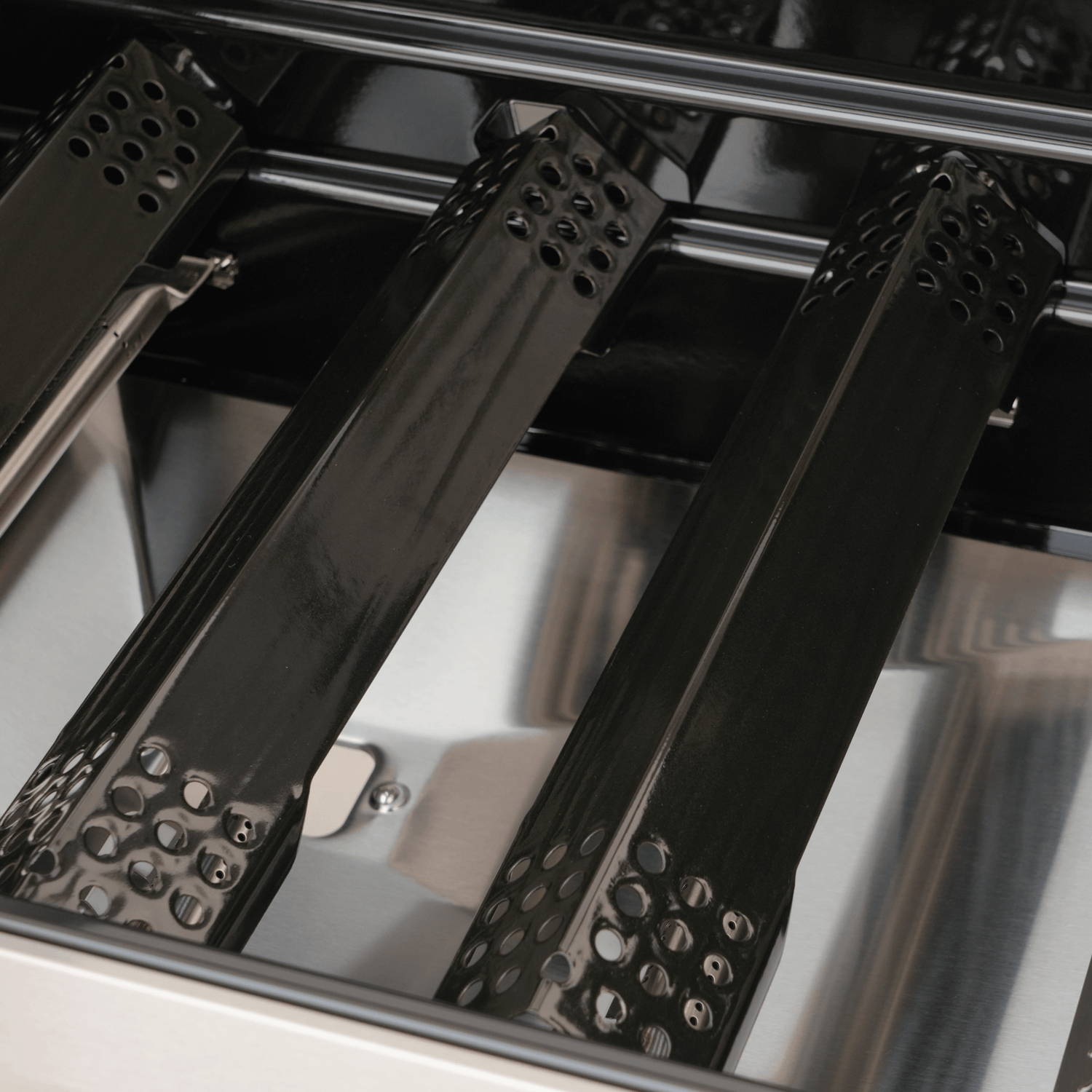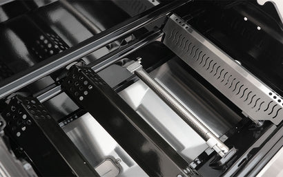 This high-heat sear zone features U-shaped fire holes in the front for stronger, more efficient flames. A V-shaped flame tamer above helps distribute heat evenly, reducing hot spots. Perfect for achieving a crispy, golden sear on steaks, burgers, and seafood.